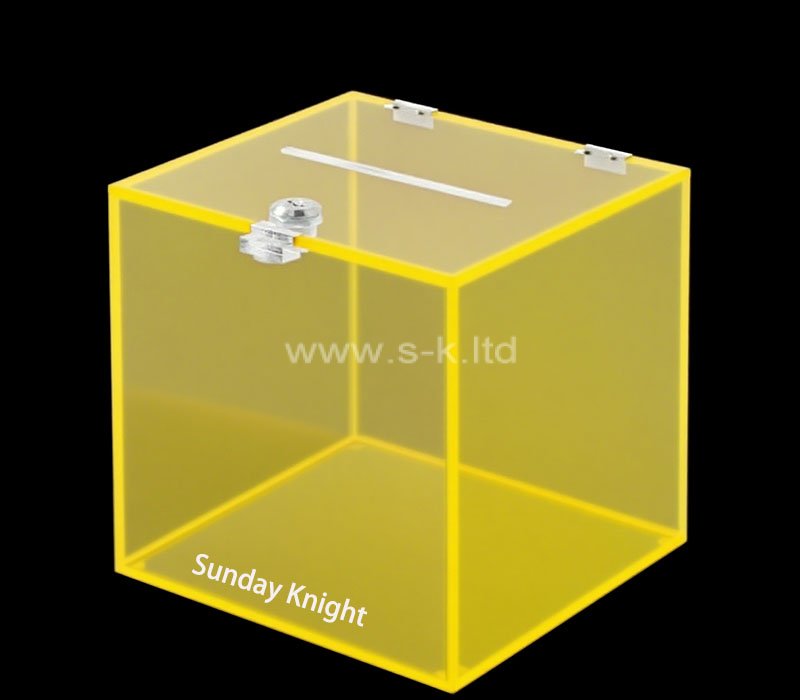 Individuell gestaltete, gelbe Wahlurne aus Acryl für Wettbewerbe - eine leuchtende und langlebige Wahl für jeden Wettbewerb. Genießen Sie eine problemlose Lieferung mit Ihren Versandkosten, die alle Steuern und Gebühren abdecken. Reibungslose, zuverlässige Lieferung in die USA, nach Europa und in ausgewählte Länder Asiens, um einen reibungslosen Ablauf von Anfang bis Ende zu gewährleisten.
