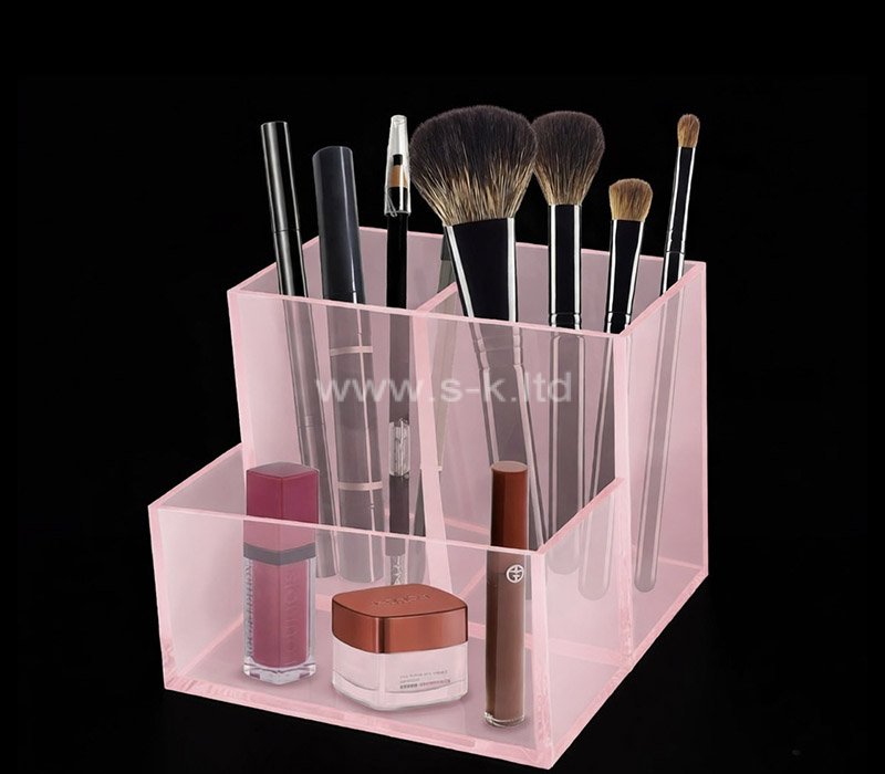 Custom transluzent blau Acryl Kosmetikpinsel Halter mit 3 Slots, entworfen, um Make-up-Pinsel ordentlich organisiert und leicht zugänglich zu halten. Die langlebige Acrylkonstruktion bietet ein modernes Aussehen bei gleichzeitiger Stärke und Klarheit. Er ist ideal für die Aufbewahrung von Pinseln, Beauty-Tools und kleinen Kosmetika und eignet sich perfekt für Schminktische, Badezimmer, Salons und professionelle Schminktheken.