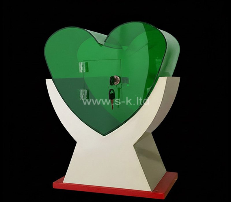 Individuelle Plexiglas-Wohltätigkeitsbox in Herzform mit Ständerhalterung