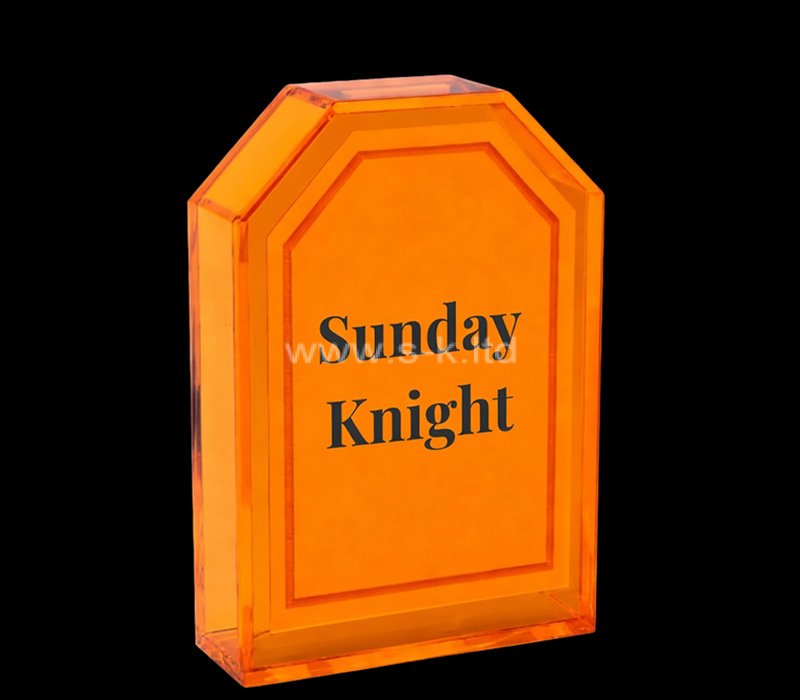 Erhöhen Sie Ihr Branding mit unseren individuellen, transluzenten, orangefarbenen Plexiglas-Wahlurnen. Diese langlebigen Acryleinheiten haben eine einzigartige Monumentform mit abgeschnittenen Ecken und sind in Farbe und Größe vollständig anpassbar. Elegant, modern und nur für den Großhandel erhältlich.