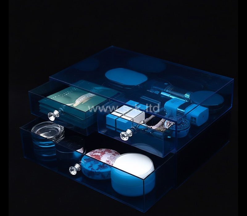 Cajones de acrílico azul translúcido para el cuidado de la piel y el maquillaje que combinan un color elegante con un práctico almacenamiento. Dispone de cajones extraíbles para organizar el cuidado de la piel, el maquillaje y los accesorios de belleza. Fabricada en acrílico duradero de primera calidad, ofrece una visibilidad clara, fácil acceso y un aspecto moderno, perfecto para tocadores, cuartos de baño y expositores de venta de cosméticos.