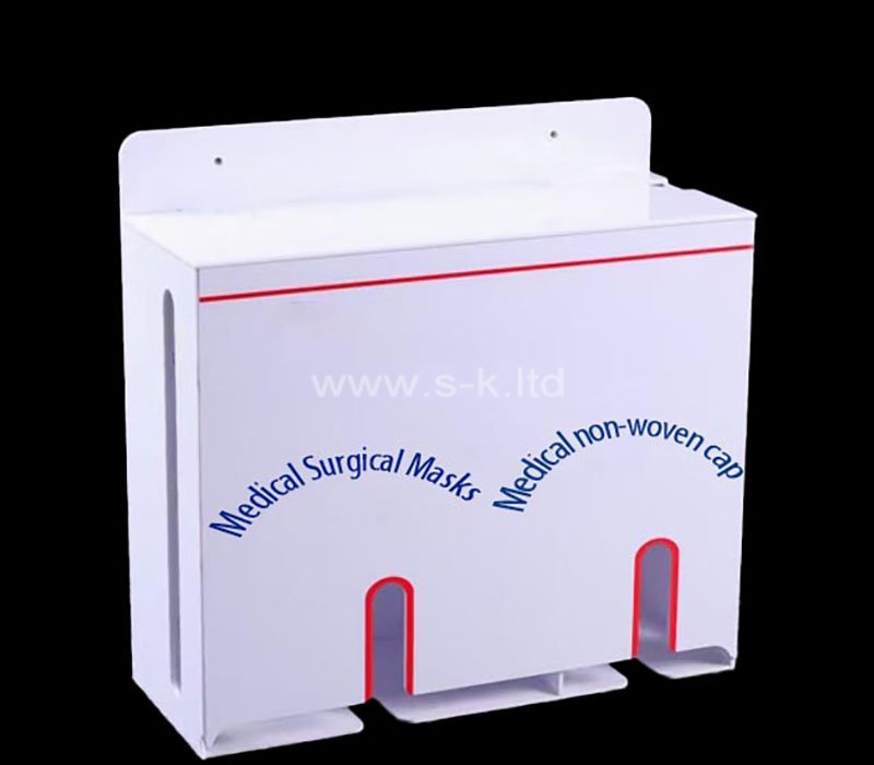 Caja acrílica blanca a medida para guardar mascarillas y gorros médicos montada en la pared, diseñada para hospitales, clínicas y centros sanitarios. Duradera, a prueba de polvo y fácil de limpiar para un uso higiénico. Su elegante y práctica instalación en la pared ahorra espacio a la vez que garantiza un almacenamiento organizado. Entrega a domicilio con todos los impuestos pagados para una compra sin preocupaciones.