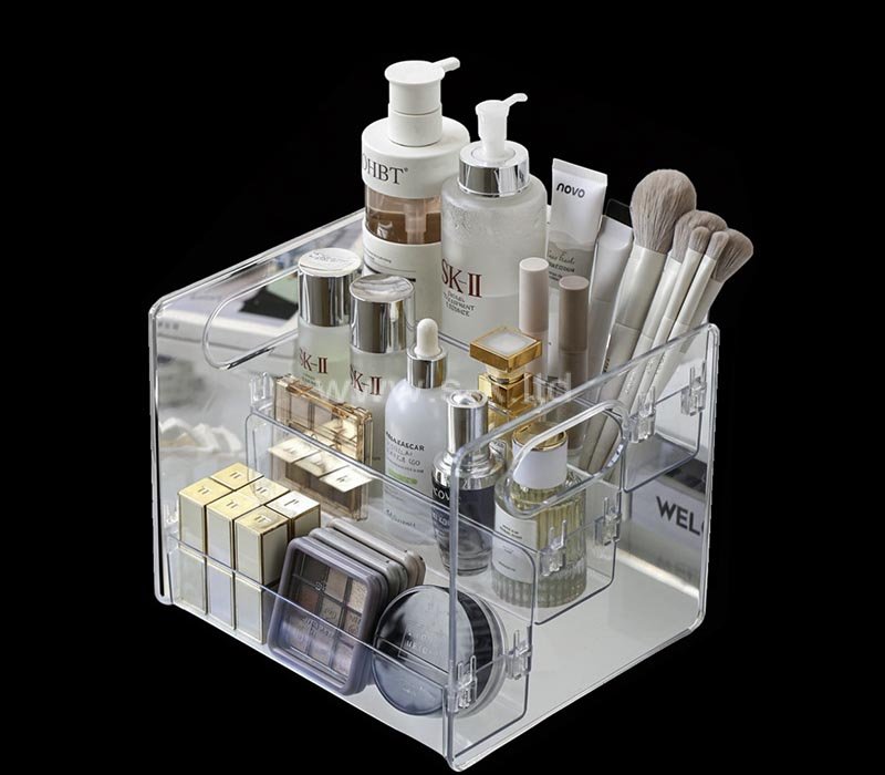 L'organisateur de comptoir en acrylique à séparateurs multiples pour les soins de la peau et le maquillage est conçu pour un rangement efficace et élégant. Il comporte plusieurs compartiments pour ranger soigneusement les flacons de soins, le maquillage, les pinceaux et les outils de beauté. Fabriqué en acrylique durable et de haute qualité avec une visibilité claire, il améliore l'organisation et la présentation pour les coiffeuses, les salles de bains et les comptoirs de vente au détail de produits de beauté.