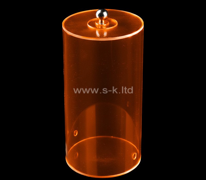 Boîte de rangement cylindrique en acrylique orange translucide avec couvercle - élégante, fonctionnelle et attrayante. Parfaite pour ranger de petits objets comme des bijoux, du maquillage ou des fournitures de bureau. Fabriquée en acrylique de première qualité pour une durabilité et un attrait moderne. Livrée directement à votre porte, toutes taxes et tous frais compris, pour une expérience fluide et sans souci.