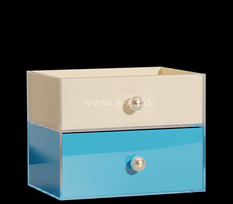 Custom blue and beige acrylic makeup 2-drawer box — stylish, practical, and perfect for organizing cosmetics and accessories. Made from premium acrylic with a smooth, modern finish that complements any vanity. Sturdy, easy to clean, and fully customizable in color and size. All-in delivery included, completely tax-free.