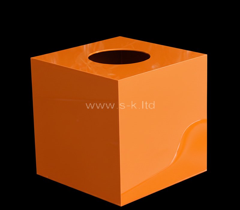 Custom orange acrylic store campaigns raffle draw box, designed for eye-catching in-store promotions and events. Made from durable acrylic with polished edges, featuring a bright orange finish, secure structure, convenient slot opening, and options for custom logo or message printing.