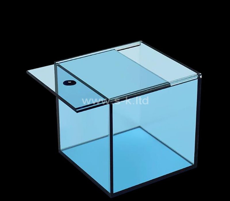 Introducing our wholesale custom translucent blue lucite square sliding lid box, merging elegance and utility. Its smooth, vibrant design offers stylish storage for desks, shelves, or spaces with a modern touch.
